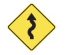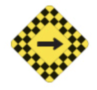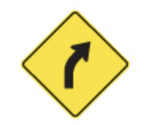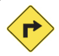 - Sharp turn or bend in the road in the direction of the arrow. The checkerboard border warns of danger. Slow down; be careful.