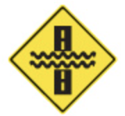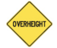 - Indicates that an upcoming structure might not allow room for a tall vehicle; therefore, drivers of such vehicles should choose an alternate route.