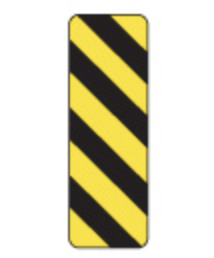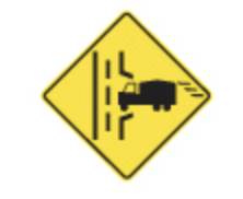- Hazard close to the edge of the road. The downward lines show the side on which you may safely pass.