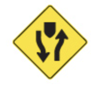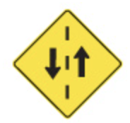 - Divided highway ends: traffic travels in both directions on the same road ahead. Keep to the right-hand road.