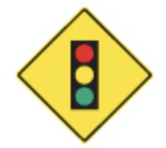 - These signs warn of dangerous or unusual conditions ahead such as a curve, turn, dip or sideroad. They are usually diamond-shaped and have a yellow background with black letters or symbols.